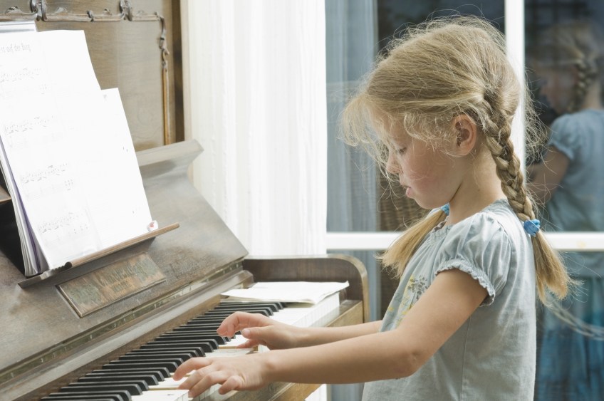 Deutschland, Bayern, Mädchen spielt Klavier